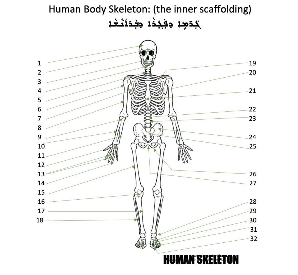 A free pdf to learn the human anatomy skeleton in Assyrian